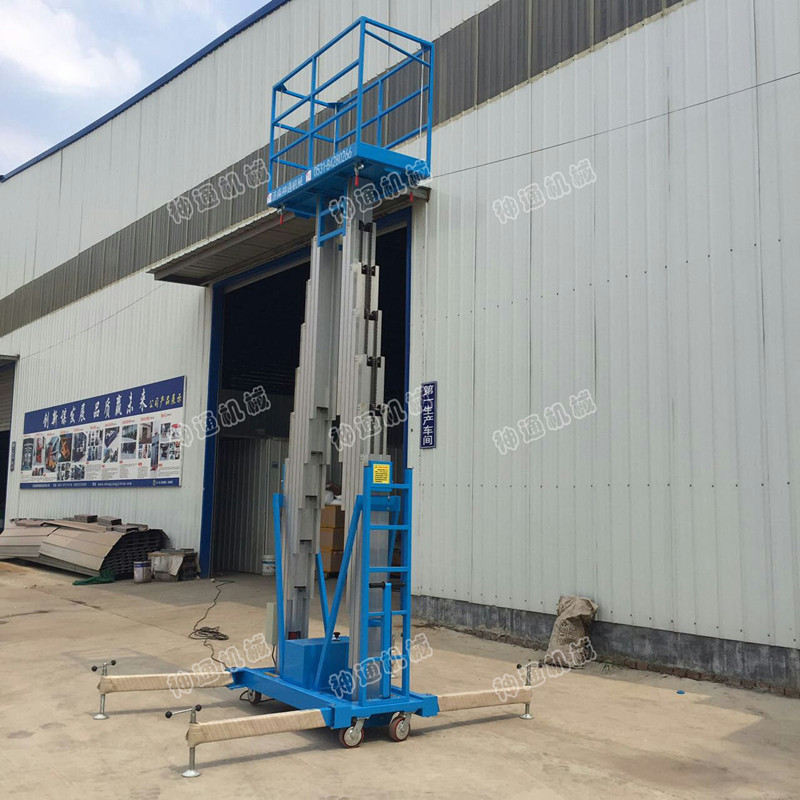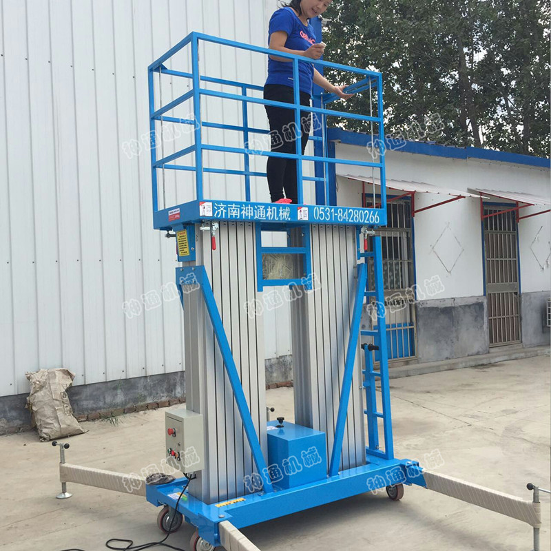 產(chǎn)品介紹:鋁合金電動升降機,采用高強度優(yōu)質(zhì)鋁合金材料,具有造型美觀、體積小、重量輕、運轉(zhuǎn)靈活,推行方便。升降平穩(wěn)、安全可靠等優(yōu)點。SJYL三柱鋁合金液壓升降平臺能穿越一般門廳,可隨意進(jìn)出電梯,能在極小的空間內(nèi)發(fā)揮最高的舉升能力。使單人高空作業(yè)變得輕而易舉。且耗電少、無污染、工作時不傷地面,可用于貼墻作業(yè)及探出作業(yè)。鋁合金液壓升降平臺分為:單柱、雙柱、三柱和四柱等。