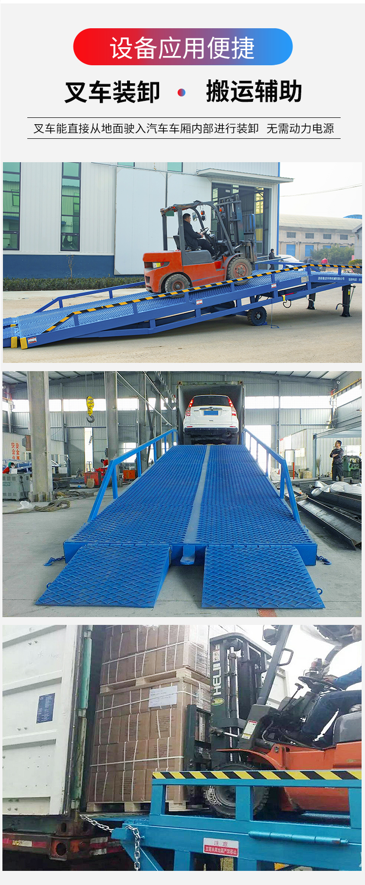 產(chǎn)品優(yōu)勢(shì):移動(dòng)式液壓登車橋單人操作,移動(dòng)靈活方便,提高工作效率,節(jié)省勞動(dòng)力,代替固定月臺(tái)不可移動(dòng)的弊病。